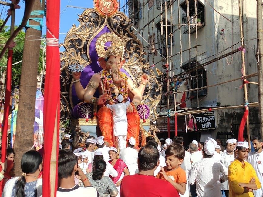 PDF resources enhance festival celebrations, particularly Ganesh Chaturthi, with detailed Aarti lyrics and rituals for daily practice and special occasions.